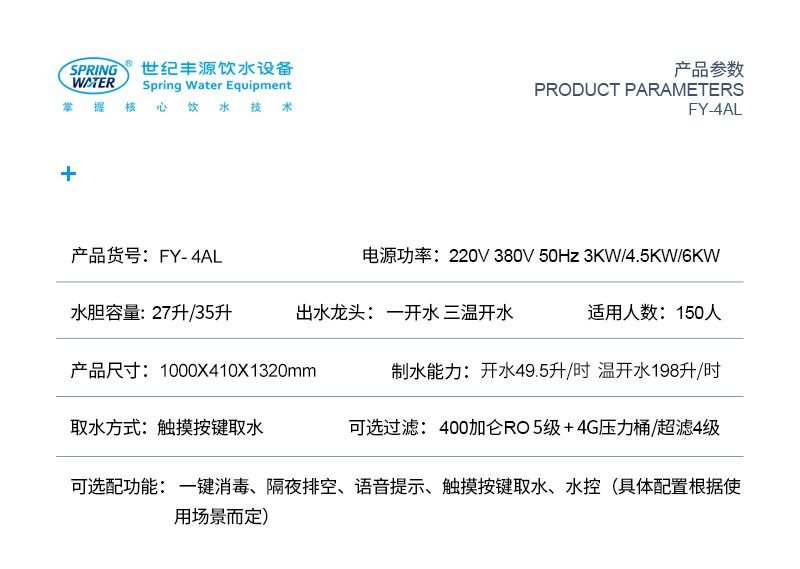 可選配功能:隔夜排空、一鍵消毒、按鍵取水、中卡水控、客供水控、RO反滲透