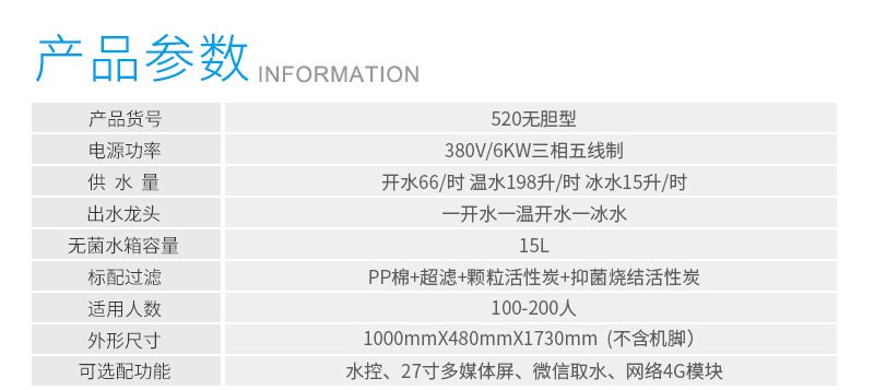 相關(guān)標簽:反滲透水處理 150人用三龍頭飲水機、、型號:FY-F520