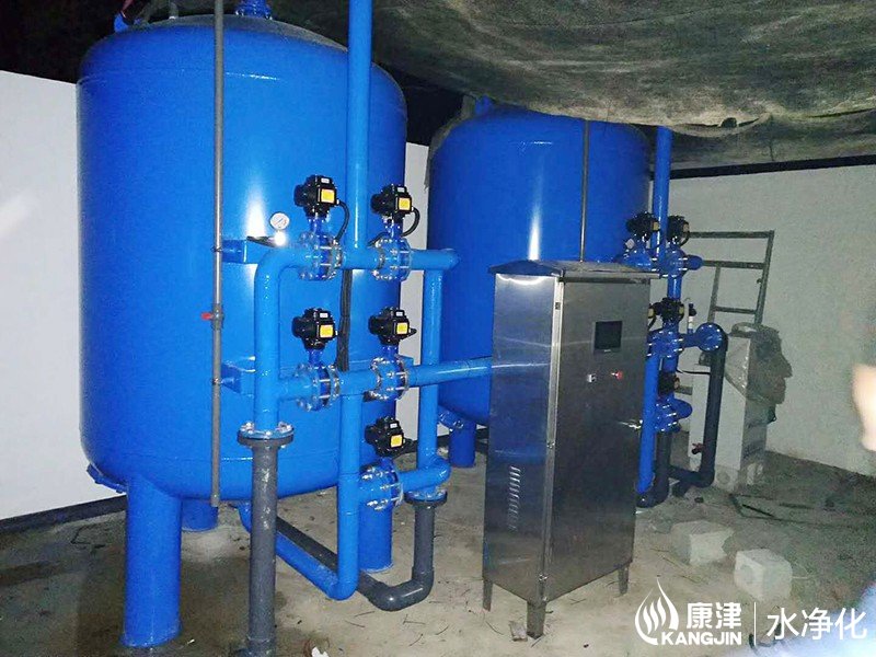 設(shè)備是壓力式的,其原理是當(dāng)原水自上而下通過(guò)濾料時(shí),水中懸浮物由于吸附和機(jī)械阻流作用被濾層表面截留下來(lái);當(dāng)水流進(jìn)濾層中間時(shí),由于濾料層中的砂粒排列的更緊密,使水中微粒有更多的機(jī)會(huì)與砂粒碰撞,于是水中凝絮物、懸浮物和砂粒表面相互粘附,水中雜質(zhì)截留在濾料層中,從而得到澄清的水質(zhì)。經(jīng)過(guò)濾后的出水懸浮物可在3毫克/升以下。