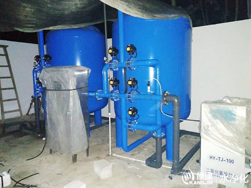 工藝流程:地下水-石英砂過(guò)濾器-二氧化氯消毒-加壓泵-高位水塔