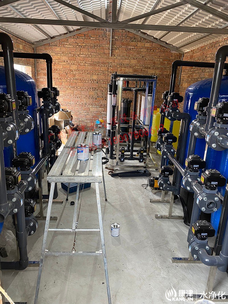 10T/H超濾水處理設備,業主是廣西防城港海水養殖公司,產出的凈水用于漁業養殖使用。超濾水處理設備過濾精度為0.005到0.01微米范圍內,可有效去除水中的微粒、膠體、細菌、熱源及高分子有機物質等。設備廣泛應用于礦泉水制造、食品和醫藥生產、城市中水會用等領域。設備工藝流程。原水來自于大壩,進入保溫水箱后經高壓泵進入預處理系統,根據業主水質情況,預處理部分我們推薦的是砂濾和錳砂濾,主要是為了軟化水質。預處理產水接著進入精密過濾器,主要是PP棉過濾工作,PP棉更換成本低,一般3個月左右檢查一次,看情況更換。超濾是一種以篩分為分離原理,以壓力為推動力的膜分離過程,所以超濾前需要增加壓力泵。產出的凈水到水箱后由業主的抽水泵供應到用水點。在這里說下,我們看到成套設備有一個黃色的桶,它是負責給超濾組件加藥清洗用的,及時清理超濾膜內的雜質,保證膜元件的使用壽命。