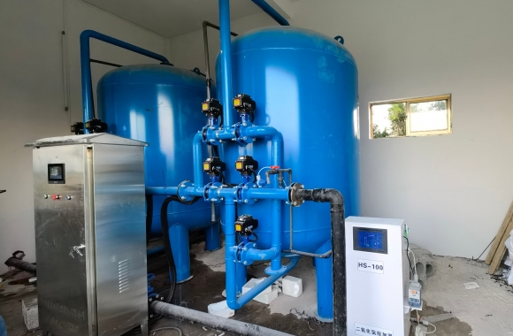 項目名稱:貴港旺嶺村地下水凈化工程 設備名稱:30噸壓力式凈水設備 工藝流程:河水-石英砂過濾器(二級過濾)-二氧化氯消毒...