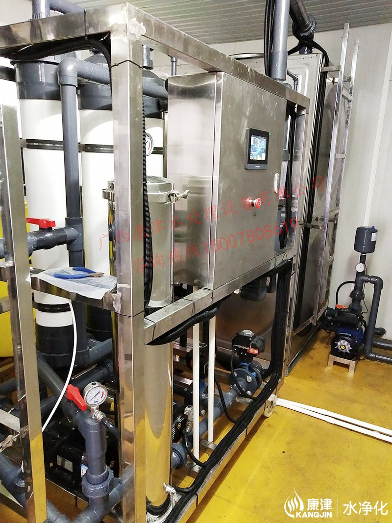 工藝流程:井水-原水箱-原水泵-石英砂過濾器-活性炭過濾器-精密過濾器-加藥-超濾設備-二氧化氯消毒-凈水箱