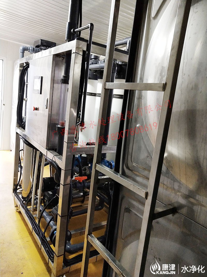項目名稱:6-8噸超濾箱式一體移動式凈水設備 設備名稱:6-8噸超濾凈水設備 工藝流程:地下水-原水箱-原水泵-石英砂過濾器-活性炭過濾器-精密過濾器-加藥-超濾設備-二氧化氯消毒-凈水箱...