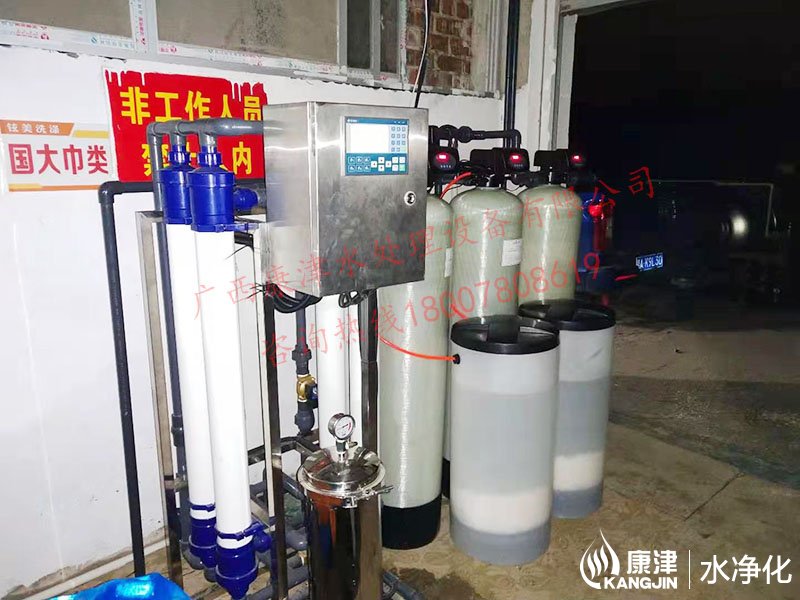 工藝流程:井水-原水箱-石英砂過(guò)濾器-活性炭過(guò)濾器-超濾-軟化水-凈水箱