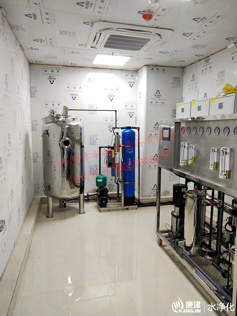 工藝流程:原水-原水泵-石英砂過濾器-活性炭過濾器-反滲透設(shè)備-精密過濾器-軟化水設(shè)備-凈水箱-變頻供水回水殺菌系統(tǒng)-用水點(diǎn)
