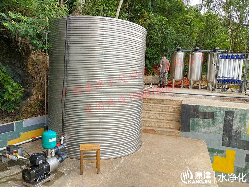 工藝流程:地下水-原水箱-原水泵-錳砂過濾器-石英砂過濾器-活性炭過濾器-精密過濾器-超濾設備-紫外線殺菌-凈水箱-變頻供水-用水點