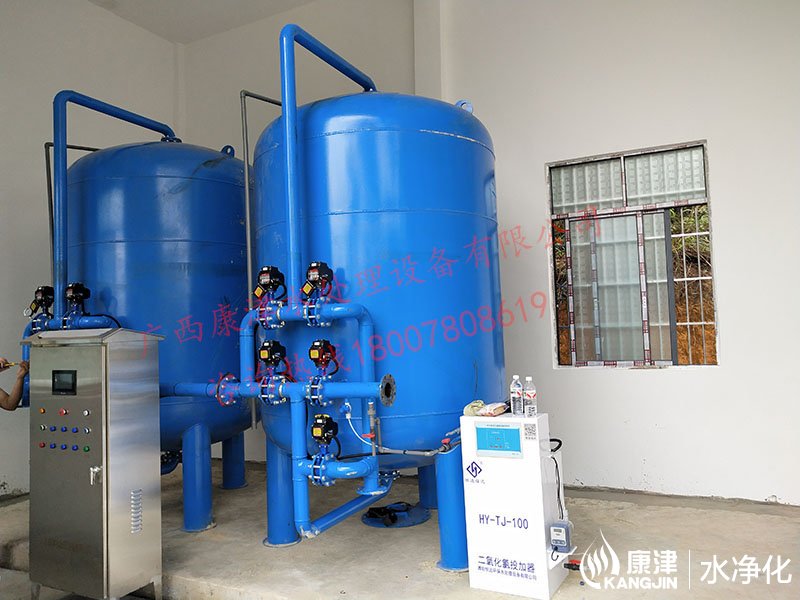 工藝流程:河水-石英砂過濾器(二級過濾)-二氧化氯消毒