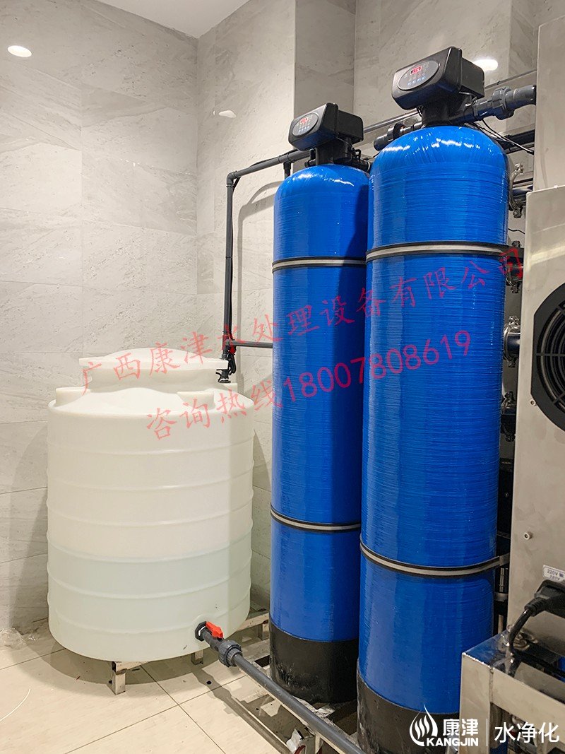 工藝流程:原水箱-原水泵-石英砂過濾器-活性炭過濾器-樹脂過濾器-精密過濾器-反滲透設(shè)備-軟水鹽-凈水箱-變頻供水回水殺菌系統(tǒng)-用水點(diǎn)