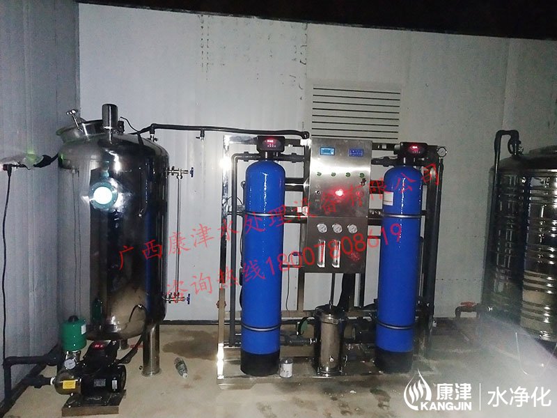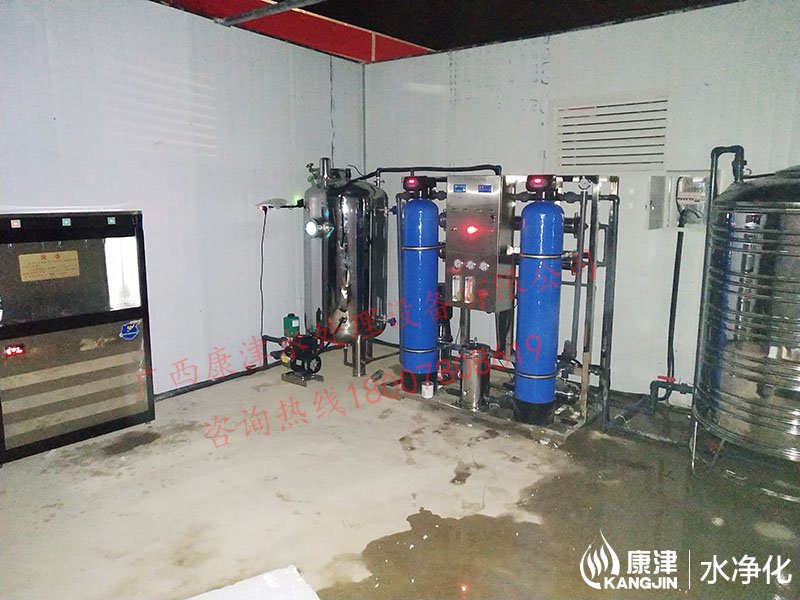 項(xiàng)目名稱:中交武鳴區(qū)鑼圩鎮(zhèn)路段項(xiàng)目部直飲水設(shè)備 設(shè)備名稱:0.5噸反滲透純凈水設(shè)備 工藝流程:原水箱-原水泵-石英砂過濾器-活性炭過濾器-精密過濾器-反滲透設(shè)備-凈水箱-變頻供水-直飲機(jī)...