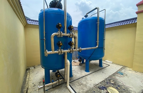 項目名稱:農村飲水安全鞏固提升工程 設備名稱:貴港市翚村20噸壓力式一體化凈水設備 工藝流程:河水-絮凝加藥-沉淀過濾器-石英砂過濾器-二氧化氯消毒...