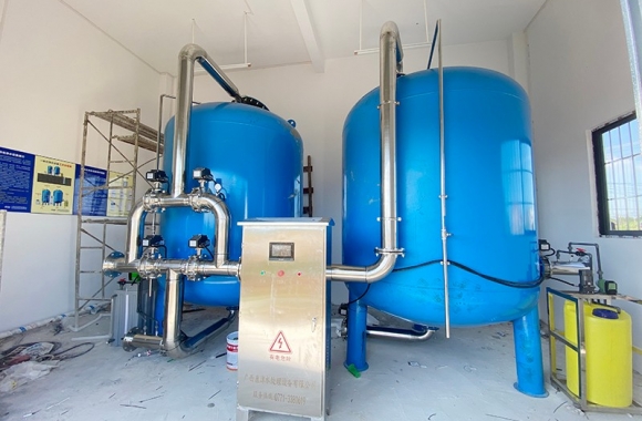 項(xiàng)目名稱:農(nóng)村飲水安全鞏固提升工程 設(shè)備名稱:貴港市旺華村50噸壓力式一體化凈水設(shè)備 工藝流程:河水-絮凝加藥-沉淀過濾器-石英砂過濾器-二氧化氯消毒...