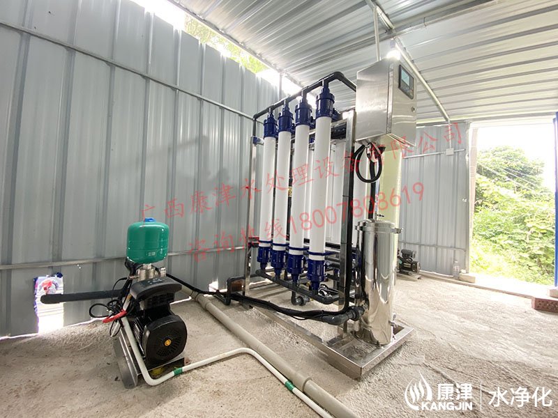 工藝流程:地下水-原水箱-原水泵-石英砂過濾器-活性炭過濾器-精密過濾器-超濾設備-凈水箱