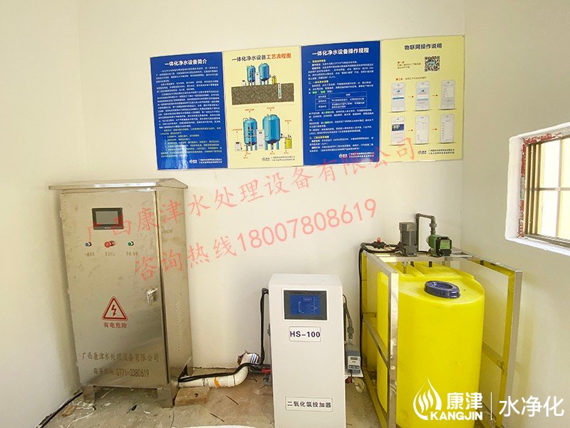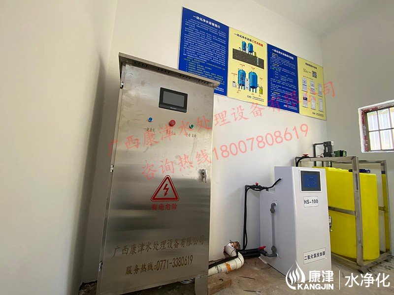 工藝流程:河水-絮凝加藥-沉淀過濾器-石英砂過濾器-二氧化氯消毒