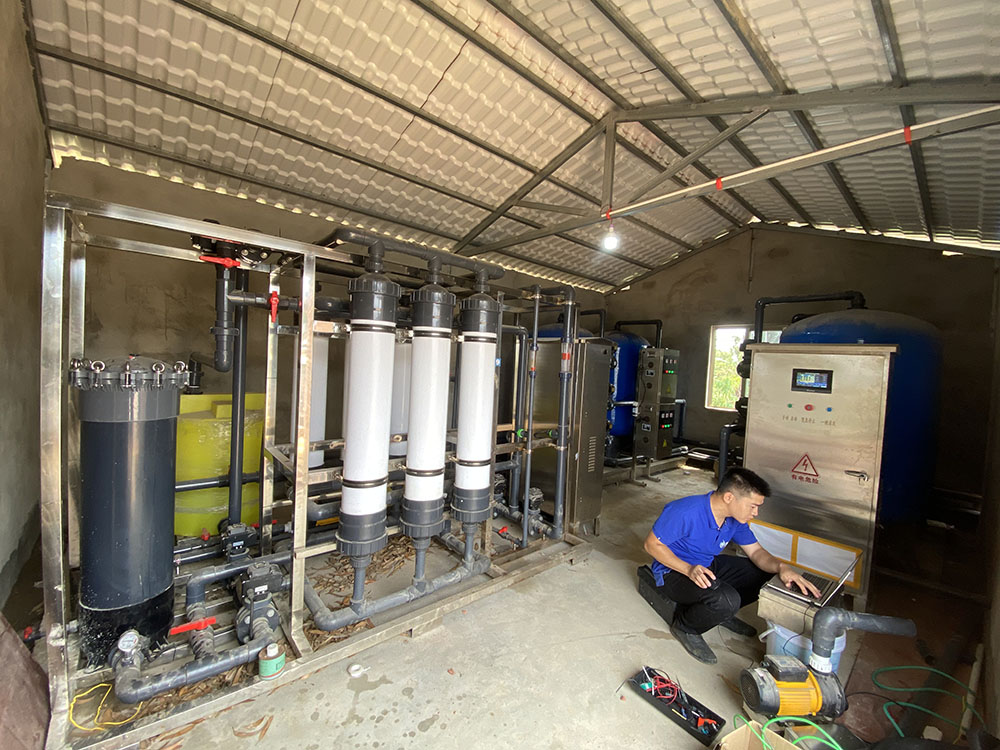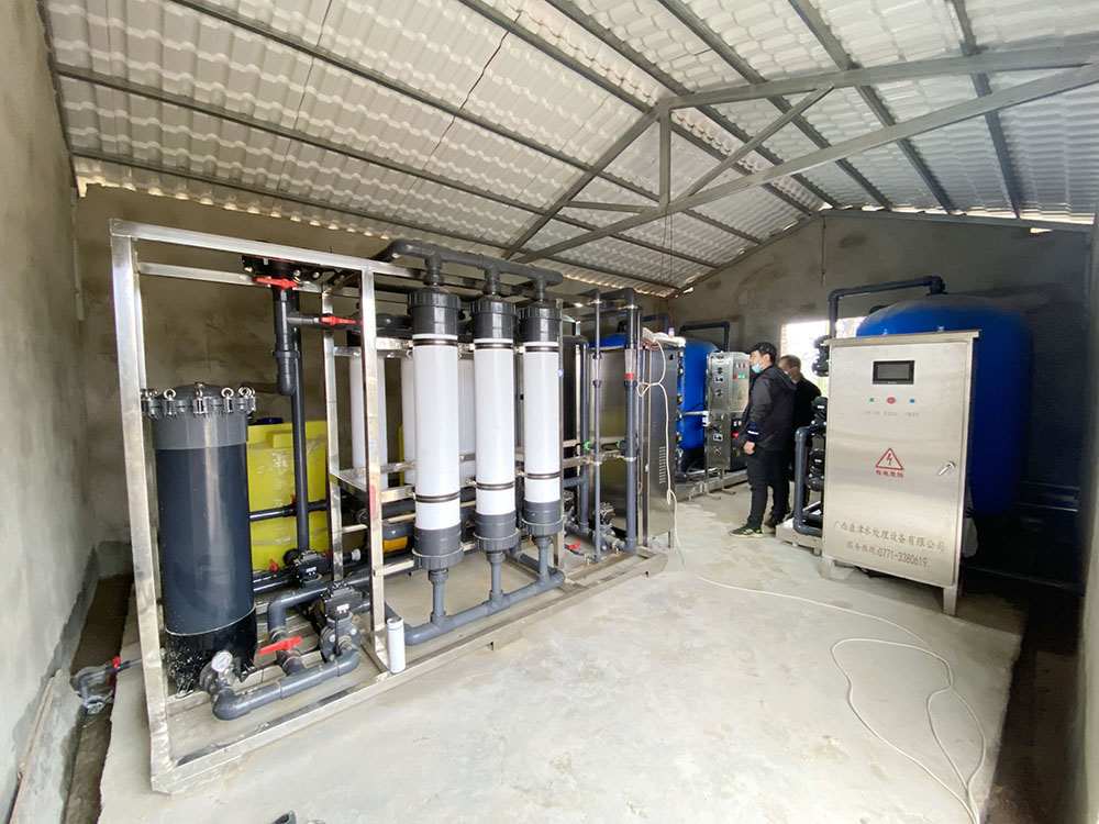 本方案主要針對原水為河水,以河水為飲用水源的地區(qū),常常在雨季會(huì)遇到水質(zhì)渾濁發(fā)黃問題。河水通常比較渾濁,水面漂浮臟東西、樹葉、水藻等,尤其在暴雨季節(jié),水中泥沙量增加,雜質(zhì)多,濁度、色度、氣味、細(xì)菌含量超標(biāo),因此必須使用專業(yè)凈水設(shè)備處理后才能達(dá)到生活飲用的目的。我們對河水的凈化主要是除去水中雜質(zhì),包括以下幾種:泥沙、大分子顆粒雜質(zhì)、懸浮物、藻類、膠體,去除污染色度、異味、微生物、細(xì)菌、病毒等,有的源水會(huì)含有HCO、Ca 、SO 、Cl 、Na 、Mg 和K。為了將河水指標(biāo)達(dá)到生活用水標(biāo)準(zhǔn),通過康津超濾設(shè)備進(jìn)而得到凈化。康津水處理為根據(jù)實(shí)際用途情況制定以下解決方案。用水人數(shù)大約在100至200人,用水處理量每小時(shí)約8噸。