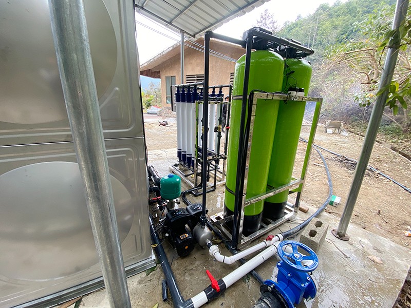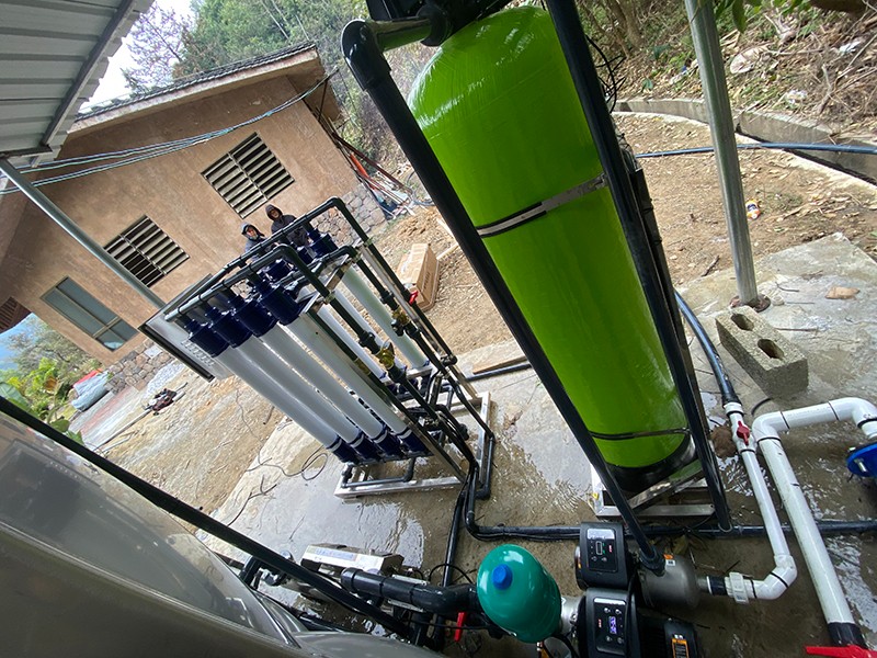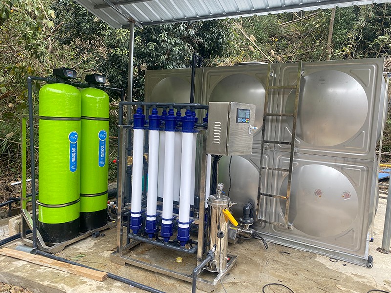 本方案主要針對原水為河水,以河水為飲用水源的地區(qū),常常在雨季會遇到水質渾濁發(fā)黃問題。河水通常比較渾濁,水面漂浮臟東西、樹葉、水藻等,尤其在暴雨季節(jié),水中泥沙量增加,雜質多,濁度、色度、氣味、細菌含量超標,因此必須使用專業(yè)凈水設備處理后才能達到生活飲用的目的。我們對河水的凈化主要是除去水中雜質,包括以下幾種:泥沙、大分子顆粒雜質、懸浮物、藻類、膠體,去除污染色度、異味、微生物、細菌、病毒等,有的源水會含有HCO、Ca 、SO 、Cl 、Na 、Mg 和K。為了將河水指標達到生活用水標準,通過康津超濾設備進而得到凈化。康津水處理為根據(jù)實際用途情況制定以下解決方案。用水人數(shù)大約在50至100人,用水處理量每小時約4噸。