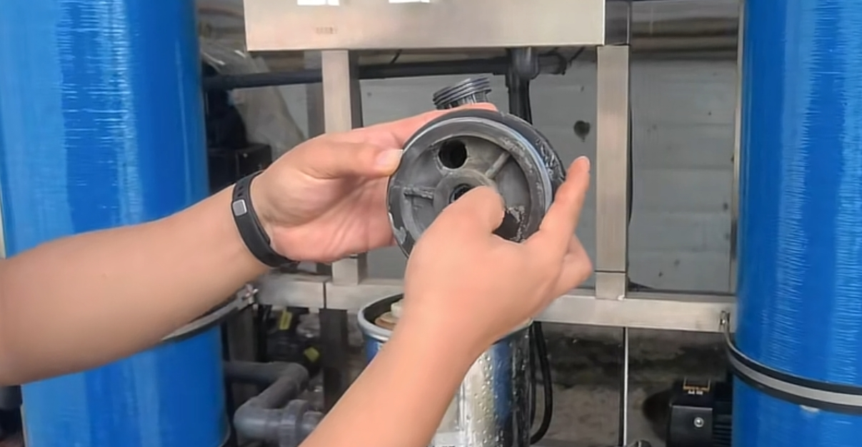 接下來的任務就是更換反滲透設備的精密過濾器的濾芯。因為我們了解了當地的水質情況,為了防止設備再次頻繁出現水垢情況,我們給業(yè)主安裝了一個阻垢罐,這個阻垢罐能夠預防反滲透膜再次堵膜,清洗溶解設備的有機物,并且能讓設備的膜使用壽命更長。