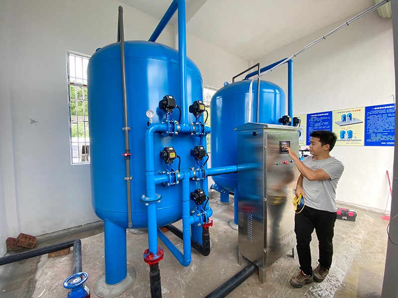 本方案主要針對原水為河水、地下水、自來水等地區,水源通常比較渾濁,水面漂浮臟東西、樹葉、水藻等,尤其在暴雨季節,水中泥沙量增加,雜質多等情況。因此利用填料來降低水中 濁度,截留除去水中懸浮物、有機物膠質顆粒,是給水凈化的重要水處理設備。康津水處理為根據實際用途情況制定以下解決方案。用水處理量每小時約20噸。