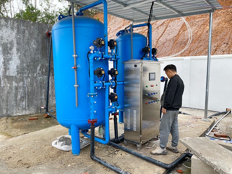 本方案主要針對(duì)原水為河水、地下水、自來(lái)水等地區(qū),水源通常比較渾濁,水面漂浮臟東西、樹(shù)葉、水藻等,尤其在暴雨季節(jié),水中泥沙量增加,雜質(zhì)多等情況。因此利用填料來(lái)降低水中 濁度,截留除去水中懸浮物、有機(jī)物膠質(zhì)顆粒,是給水凈化的重要水處理設(shè)備。康津水處理為根據(jù)實(shí)際用途情況制定以下解決方案。用水處理量每小時(shí)約5-8噸。
