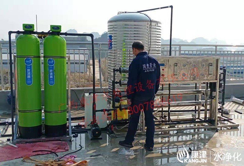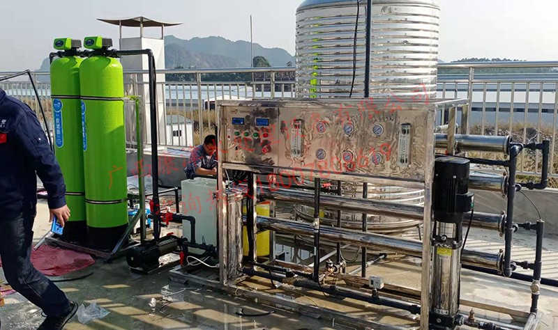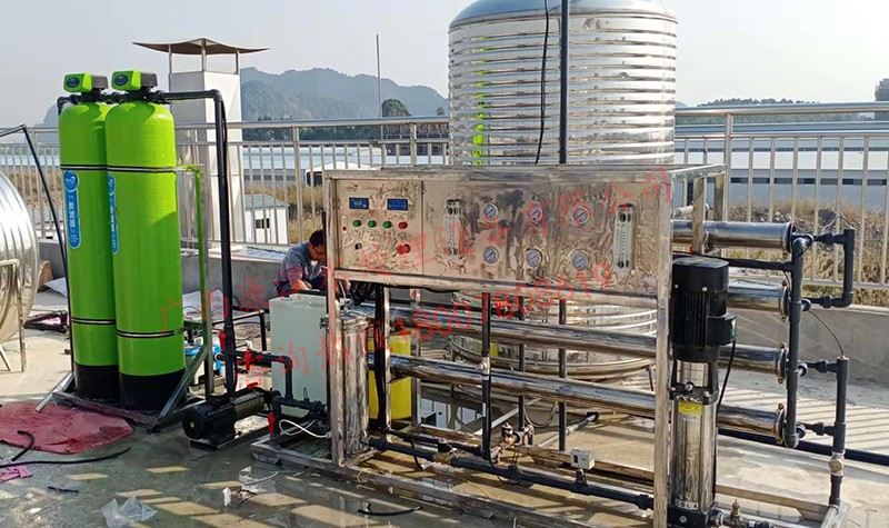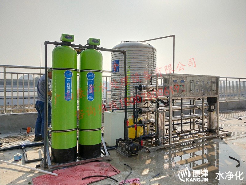 工藝流程:原水箱-原水泵-石英砂過濾器-活性炭過濾器-精密過濾器-反滲透設(shè)備-凈水箱