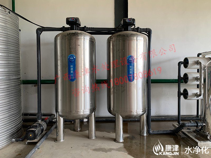 工藝流程:原水箱-原水泵-石英砂過濾器-活性炭過濾器-精密過濾器-反滲透設備-凈水箱-變頻供水-各點用水